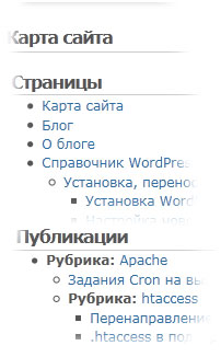 С помощью функций WordPress можно довольно просто создать карту сайта или содержание каких-то разделов сайта, например, каталог товаров, информация о которых содержится в записях или на постоянных страницах сайта WordPress. Конечно, уже давно созданы плагины, генерирующие карту сайта, но что-то в них так много кода понаписано, так все запутано! Итак, создадим шаблон постоянной страницы для древовидной карты сайта с использованием функций WordPress wp_list_pages, get_page_by_title, get_categories и пользовательского запроса - объекта WP_Query.