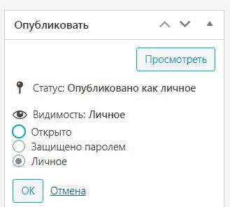 В используемой теме WordPress в блоге записей появляются записи, опубликованные как "Личное" (их видят авторизованные автор и администратор сайта). Задача: не показывать личные записи на главной странице.